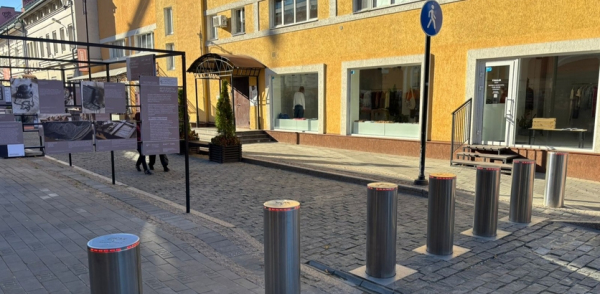 На ул.Кожевенной завершили установку боллардов, оснащенных современными системами видеонаблюдения и распознавания номеров